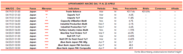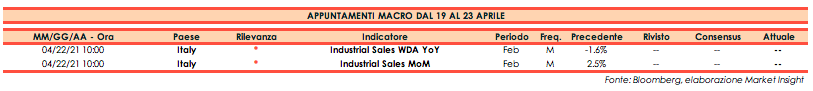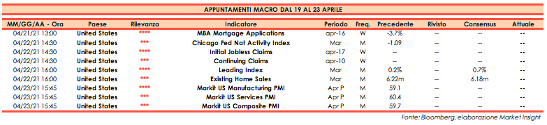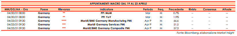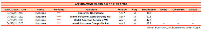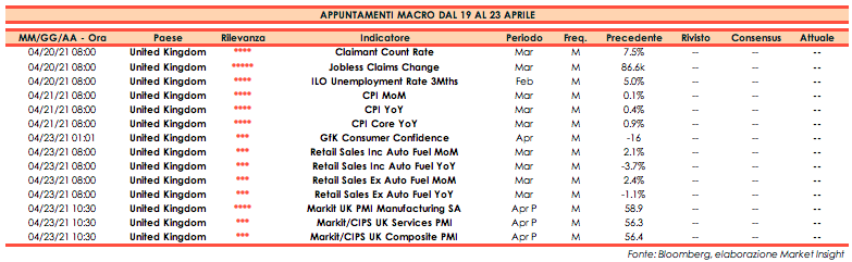 Di seguito gli appuntamenti macroeconomici in programma per la prossima settimana.