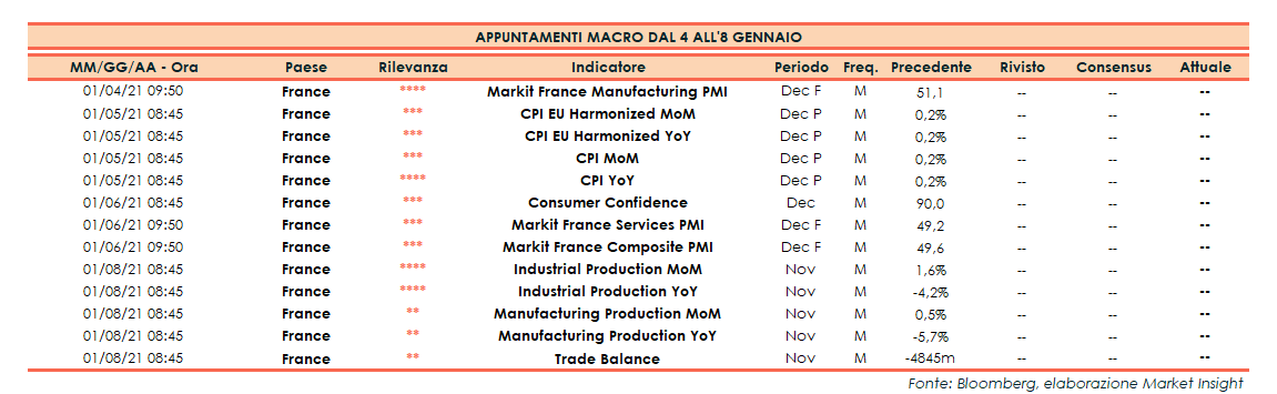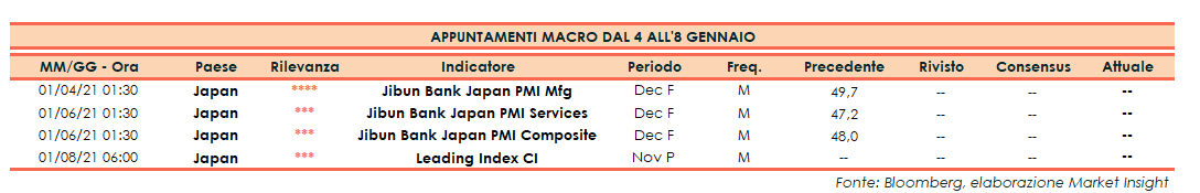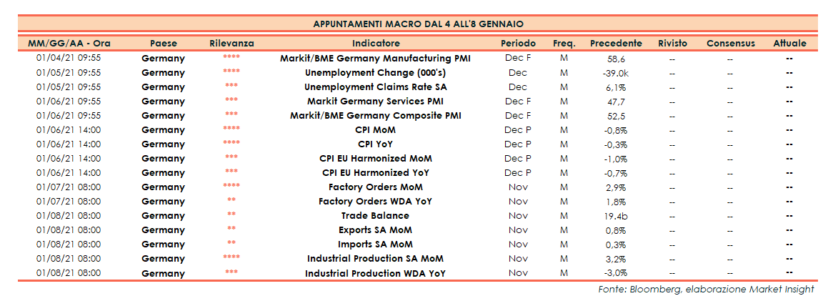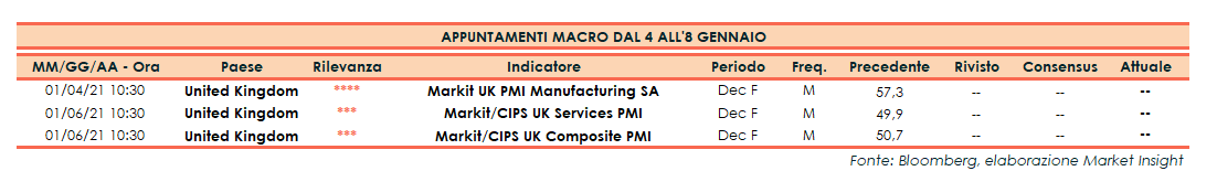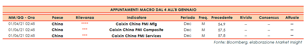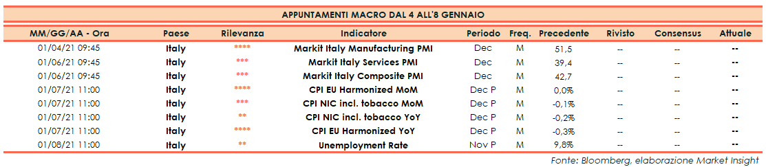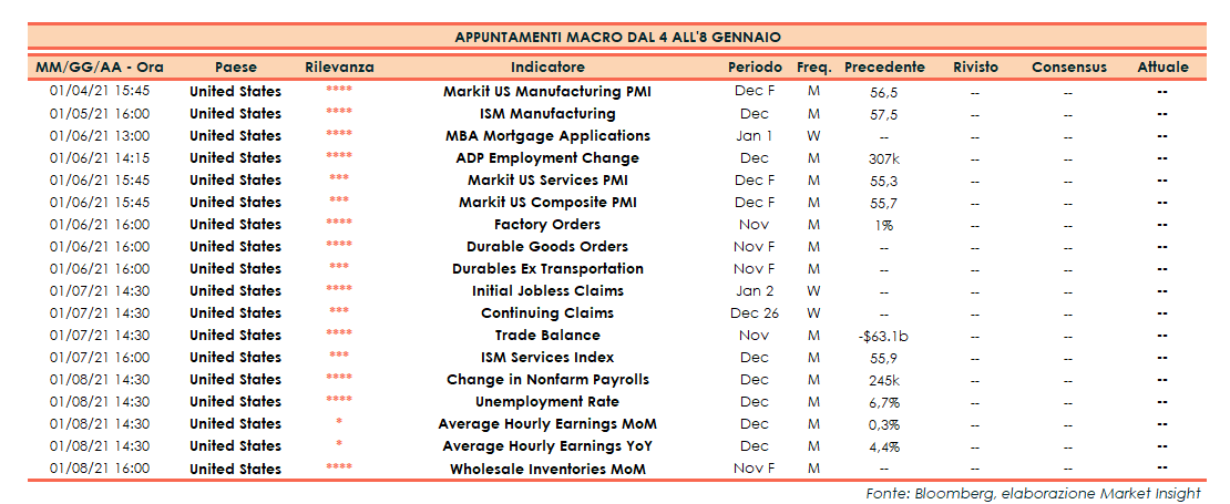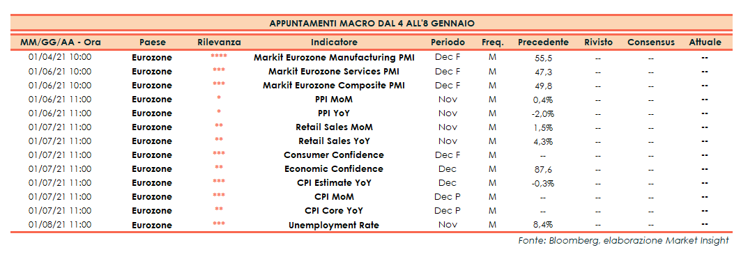 Appuntamenti macro della prossima settimana (dal 4 all’8 gennaio 2021)