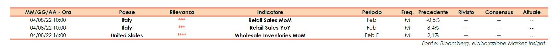 Ore 10:00 Italia: Vendite al dettaglio, febbraio;