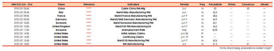 Dalle ore 09:45 alle 10:30, Pmi manifatturiero relativo al mese di giugno di Italia, Francia, Germania, Eurozona e Regno Unito;