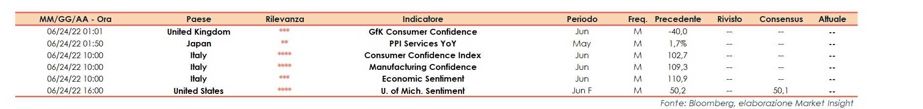 Ore 10:00 Italia: Fiducia consumatori, giugno;