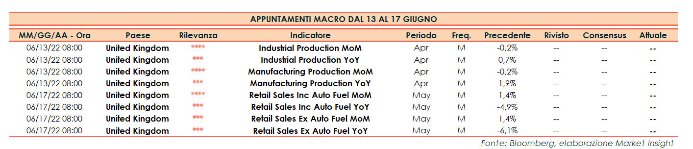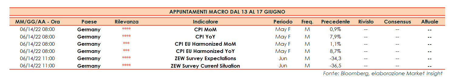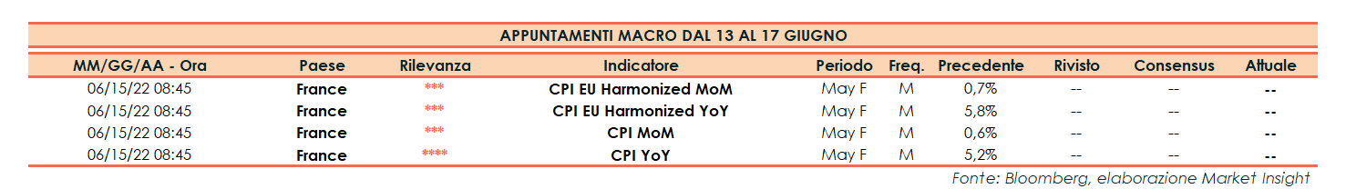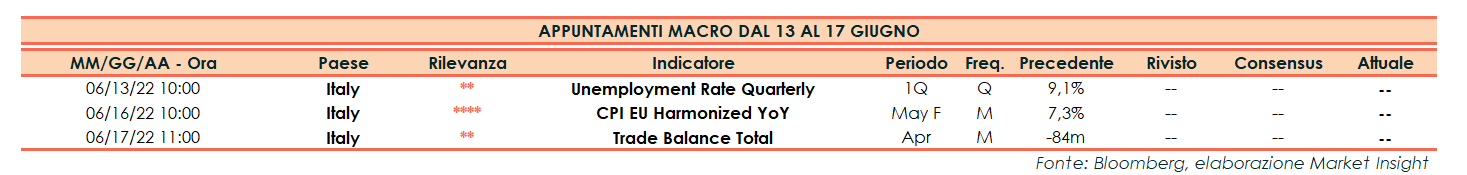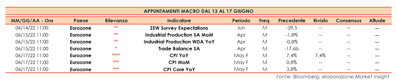 Appuntamenti macro prossima settimana (dal 13 al 17 giugno)
