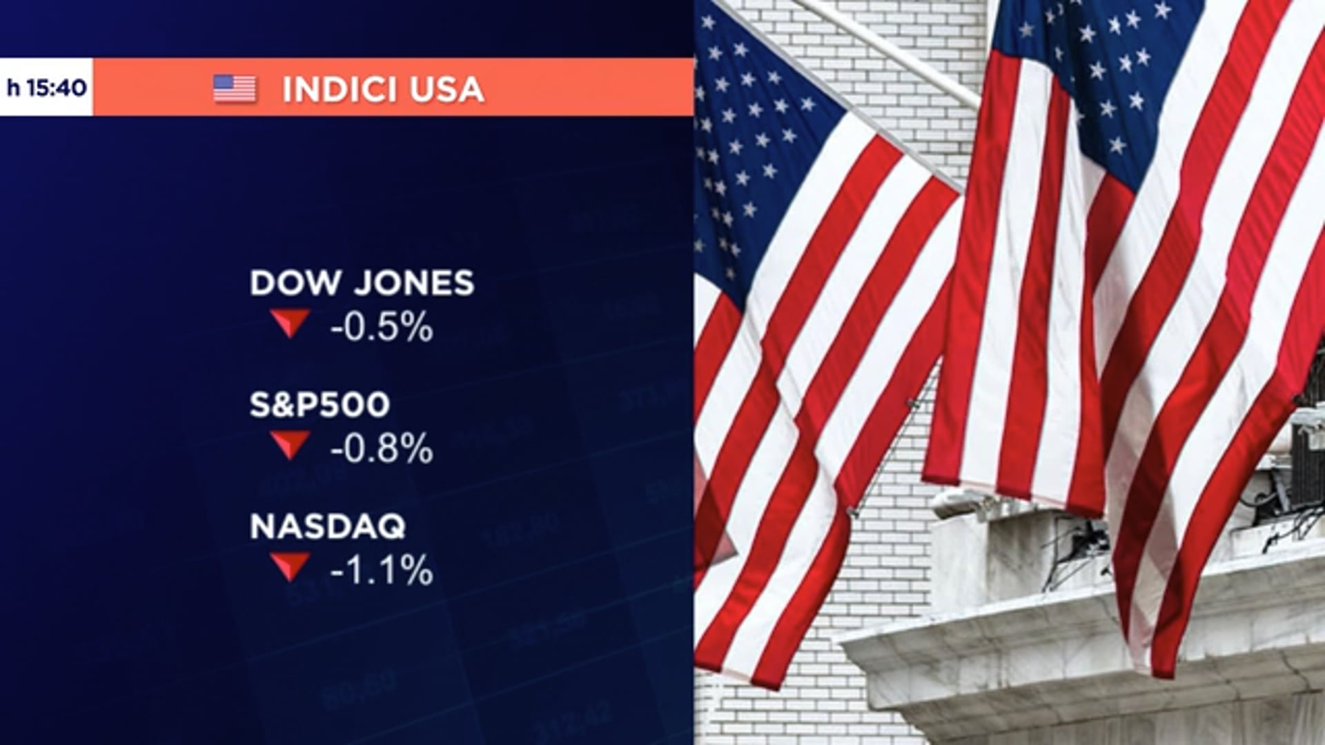 AVVIO IN RIBASSO A WALL STREET, NASDAQ -1,1% ED S&P 500 -0,8%