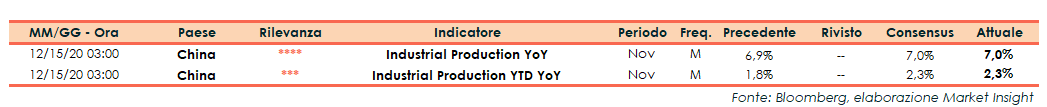 L’Ufficio nazionale di statistica di Pechino ha rilevato nel mese di novembre un incremento della produzione industriale in Cina del 7% annuo, in linea con il consensus e lievemente superiore al dato di ottobre (+6,9%).