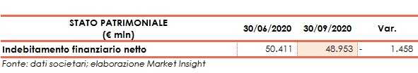 Al 30 settembre 2020 l’indebitamento finanziario netto era pari a 48.95 miliardi, in calo di 1,5 miliardi rispetto a 50,4 miliardi di fine giugno 2020.