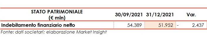 Al 31 dicembre 2021 l’indebitamento finanziario netto cifra in 51,9 miliardi, in calo di 2,4 miliardi rispetto a 54,4 miliardi di fine settembre 2021.