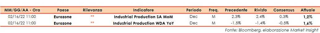 L’Eurostat ha riferito che a dicembre l’indice destagionalizzato della produzione industriale ha segnato un aumento dell’1,2% su base mensile, rispetto al +0,3% delle attese, dopo il +2,4% di novembre (rivisto da +2,3%).