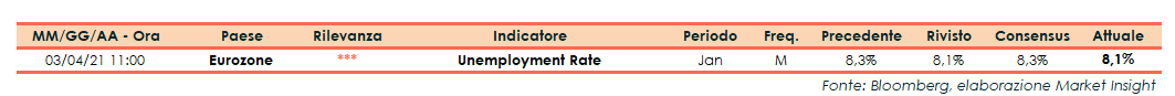 A gennaio il tasso di disoccupazione dell’Eurozona si è attestato all’8,1%, stabile rispetto a dicembre (dato rivisto da 8,3%) ma al di sotto delle stime degli analisti (8,3%).