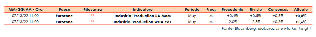 Eurozona – A maggio produzione industriale a +0,4% m/m e a +1,6% a/a oltre il consensus