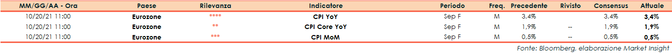 L’Eurostat ha comunicato che nel mese di settembre i prezzi al consumo nell’Eurozona hanno registrato un incremento dello 0,5% su base mensile (dato finale), in linea con la rilevazione preliminare e con il consensus.