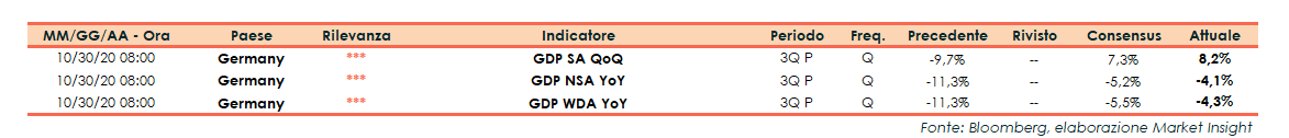 Il dato aggiustato per i giorni lavorativi mostra un calo del 4,3% (-5,5% consensus) dopo il -11,3% del secondo trimestre 2020.
