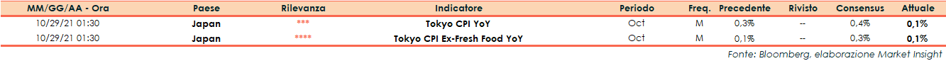 Giappone – A ottobre CPI regione Tokyo +0,1% (consensus +0,4%)