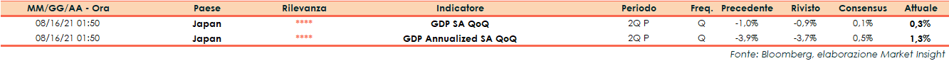 Secondo la rilevazione finale dell’Istituto di ricerca economica e sociale del Cabinet Office giapponese, il Prodotto Interno Lordo (Pil) destagionalizzato nel secondo trimestre 2021 (dato preliminare) è salito dello 0,3% su base trimestrale, superiore al consensus (+0,1%) e alla rilevazione finale del primo trimestre (-0,9%), rivisto da -1%.