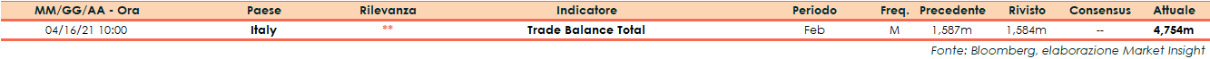 I dati Istat indicano che a febbraio la bilancia commerciale italiana ha evidenziato un surplus di 4,754 miliardi, in aumento rispetto al saldo positivo di 1,584 miliardi di gennaio (rivisto da 1,587 miliardi).