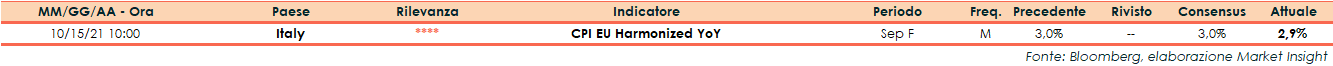 A settembre il dato finale dell’indice armonizzato dei prezzi al consumo evidenzia un aumento del 2,9% su base annuale, dato lievemente inferiore al consensus e alla stima preliminare (entrambi a +3%).