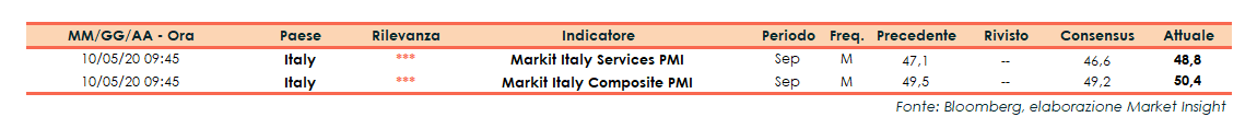 A settembre, in Italia, l’indice Markit Pmi Servizi si è attestato a 48,8 punti, in aumento rispetto ai 47,1 punti di agosto. Gli analisti si attendevano un valore pari a 46,6 punti.