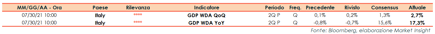 Il dato su base annua mostra un incremento del 17,3% (consensus a +15,6%) dopo il -0,7% del primo trimestre 2021 (rivisto da -0,8%).