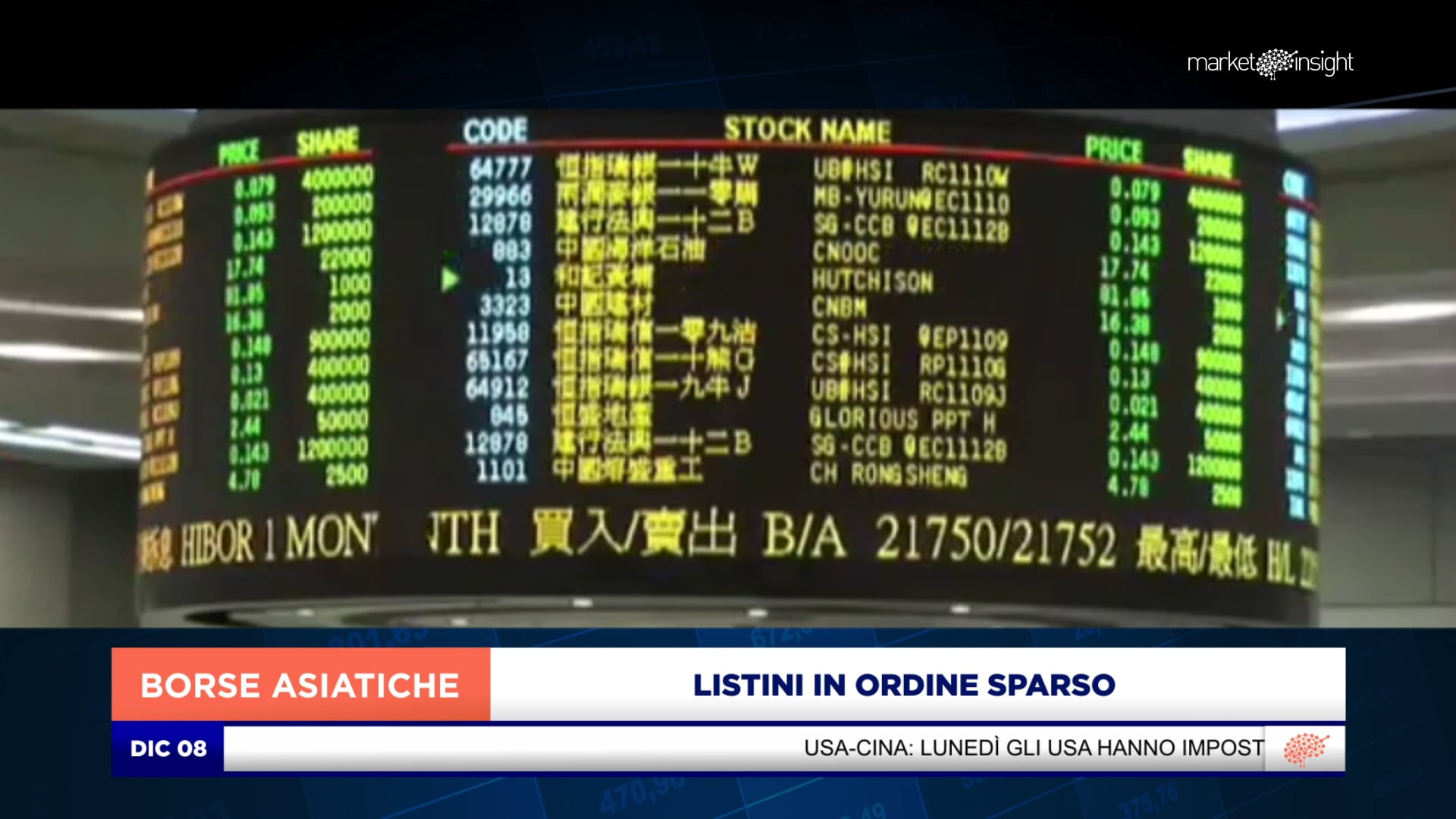 LISTINI ASIATCI IN ORDINE SPARSO, POCO SOPRA LA PARITÀ SHANGHAI (+0,1%)