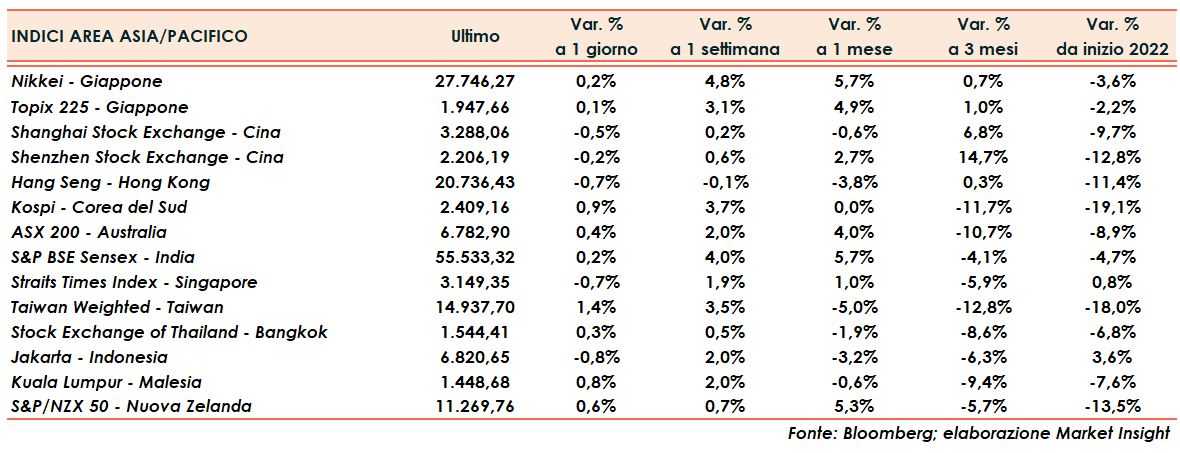 Giappone poco mosso con Nikkei a +0,2% e Topix a +0,1%.