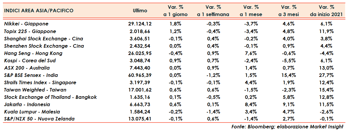 A sostenere il sentiment anche le relazioni Usa-Cina dopo che il vice premier cinese Liu He e il segretario al Tesoro degli Stati Uniti Janet Yellen hanno parlato di questioni economiche in una videocall che la controparte asiatica ha definito “pragmatica, sincera e costruttiva”.