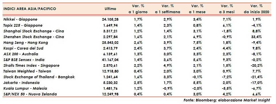 Tornando ai listini asiatici, bene Shanghai (+1,2%) e Shenzhen (+1,6%) così come Hong Kong (+2,6%).