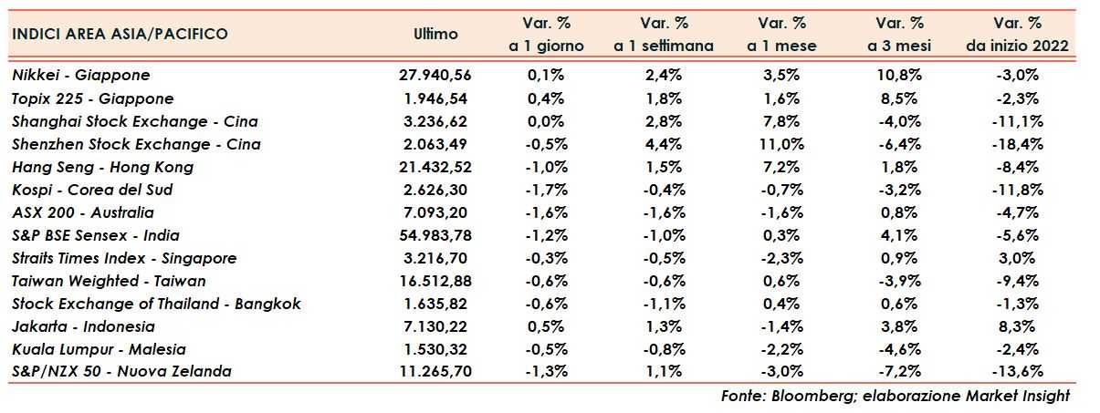I passi avanti effettuati dalla Cina verso la normalizzazione della situazione sono stati in parte messi in secondo piano dagli operatori, intenti ancora a valutare dettagliatamente l’attuale scenario macroeconomico e l’impatto delle politiche monetarie restrittive.