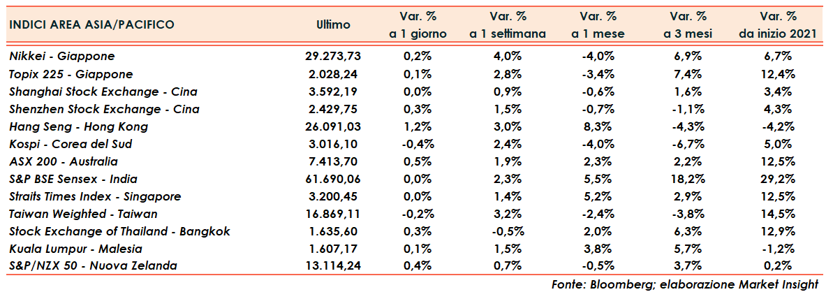Hong Kong in evidenza a +1,2%.