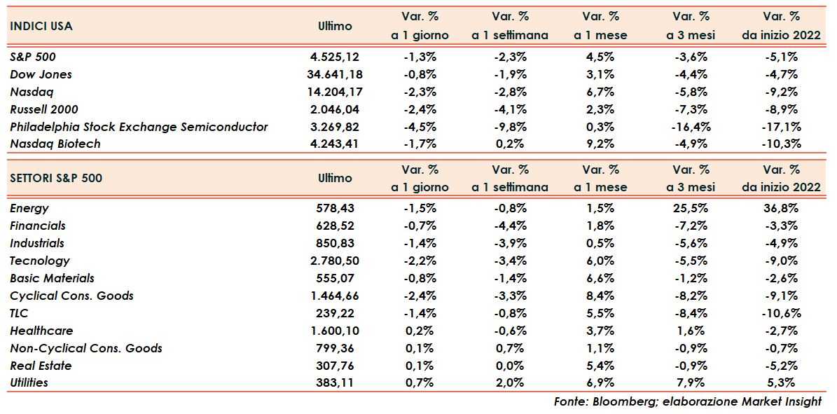 Seduta difficile ieri a Wall Street con gli indici che provano a tenere, ma cedono progressivamente nella seconda parte chiudendo molto vicino ai minimi intraday, ad eccezione del Russell 2000 che finisce alzando bandiera bianca (-2,4%).