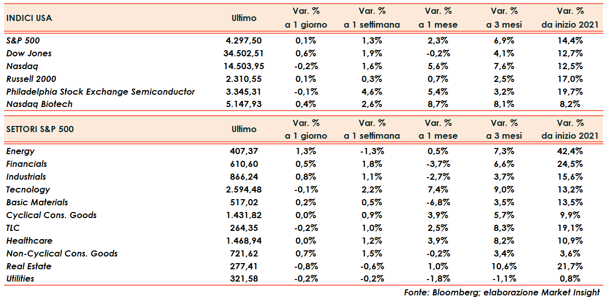 Mercati Usa – Lo S&P500 (+0,1%) chiude a 4.300 punti.