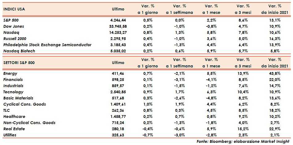 Positivo anche lo S&P500 (+0,5%) che si avvicina anch’esso al record della scorsa settimana.