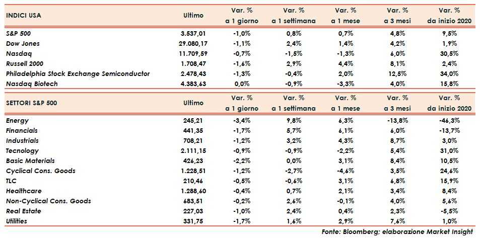 Il bilancio finale vede lo S&P500 in calo di un punto percentuale, il Dow Jones dell’1,1%, il Nasdaq dello 0,7% ed il Russell 2000 dell’1,8%. Rimbalza con decisione, al contrario, il VIX che sale a 25,3 punti (+8%).