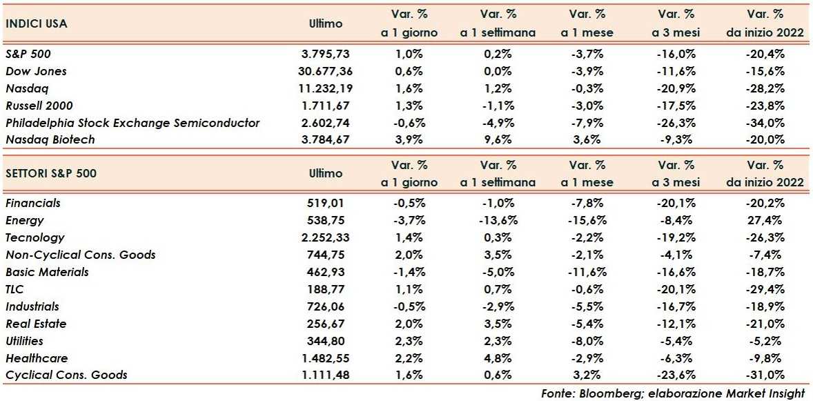 Il Nasdaq ha guadagnato l’1,6%. Più contenuti i rialzi del Russell 2000 (+1,3%), dello S&P500 (+1%) e del Dow Jones (+0,6%) che soffre il calo di Caterpillar (-4,9%), nuovo minimo annuo. Tra i big della tecnologia Apple recupero il due per cento e Amazon oltre il tre.