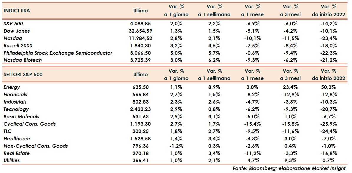Deciso rimbalzo di tutta la pattuglia dei titoli tecnologici a larga capitalizzazione da Tesla (+5%) a AMD (+9%), Amazon (+4%), mentre Apple e Microsoft limitano il rialzo a poco più del due per cento.