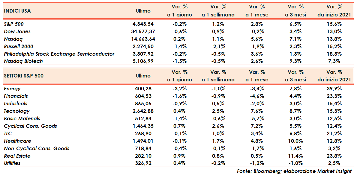 Il bilancio finale vede lo S&P500 in calo solo dello 0,2%, il Dow Jones dello 0,6% ed il Russell 2000 dell’1,2%.