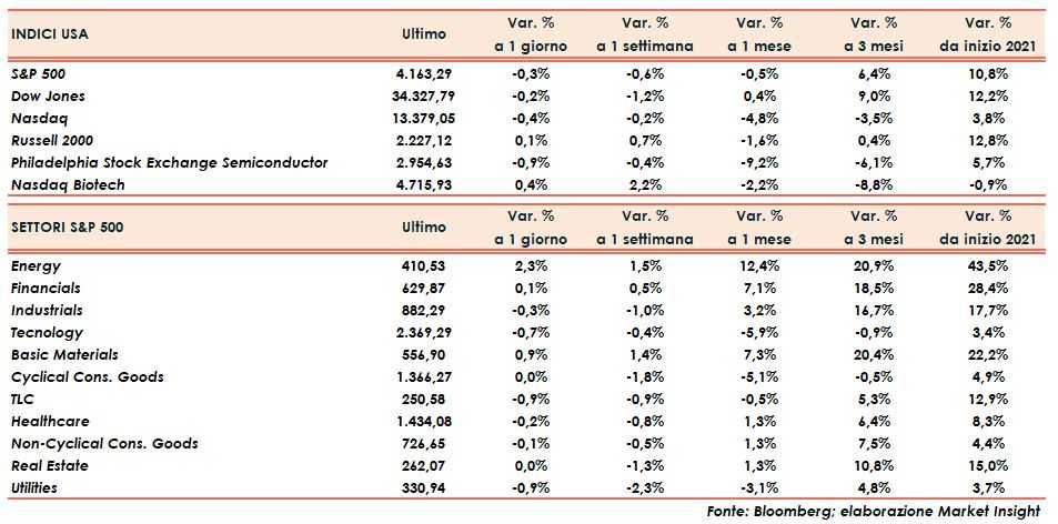 Dow Jones e S&P500 arretrano dello 0,2% e dello 0,3%, mentre il listino tecnologico dello 0,4%, dopo una partenza nella quale supera anche il punto percentuale. In rialzo (+0,1%) solo il Russell 2000, unico indice che chiude sui massimi intraday.