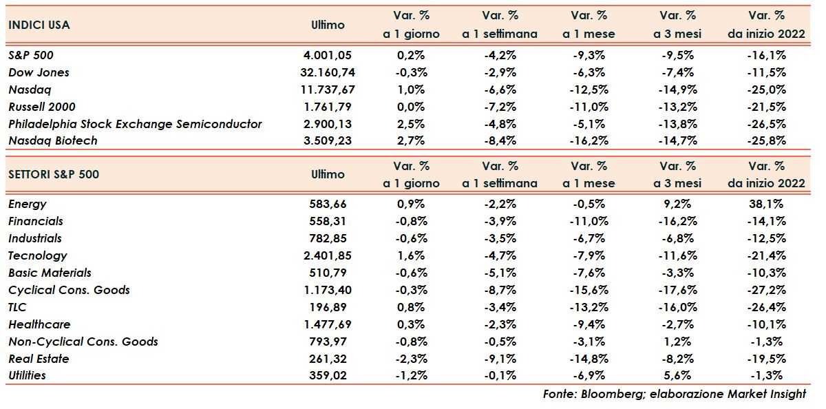Il bilancio conclusivo vede lo S&P500 (+0,2%) chiudere di un soffio al di sopra di quota 4.000 punti ed unico indice positivo oltre a quello tecnologico, il Russell 2000 invariato ed il Dow Jones in calo dello 0,3%.