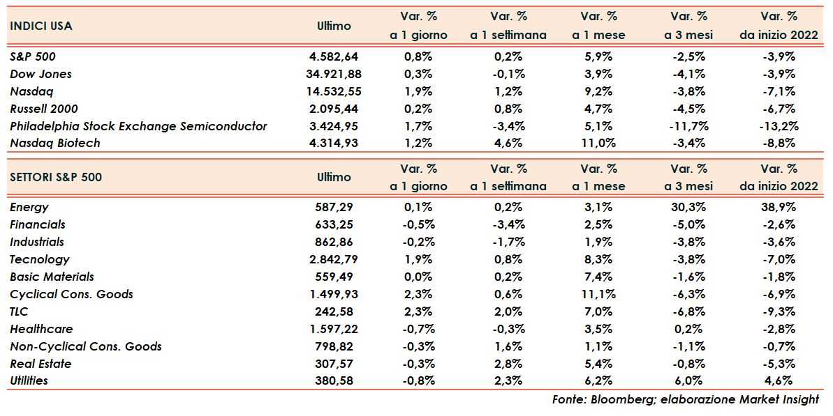 Oltre al Nasdaq (+1,9%) sale solo lo S&P500 (+0,8%), mentre Dow Jones (+0,3%) e Russell 2000 (+0,1%) terminano con modesti guadagni.