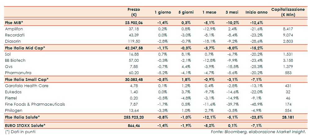 Ieri il Ftse Italia Salute ha riportato un -0,8%, al di sopra comunque del corrispondente europeo e del Ftse Mib, entrambi -1,4%.