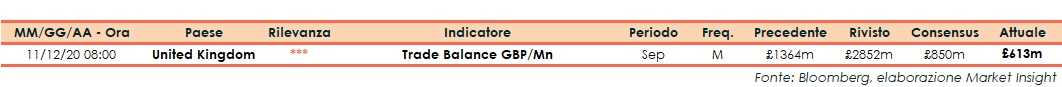 A settembre la bilancia commerciale del Regno Unito ha messo in evidenzia un surplus di 613 miliardi di sterline, dopo i 2,852 miliardi di agosto (dato rivisto al rialzo da 1,364 miliardi). Gli analisti si attendevano un surplus di 850 miliardi.