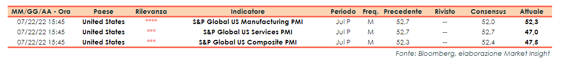 Negli Stati Uniti, a luglio, la lettura preliminare di S&P ha evidenziato che l’indice Pmi Manifatturiero si è attestato a 52,3 punti, al di sopra del consensus (52 punti). Il dato finale di giugno evidenziava un valore di 52,7 punti.