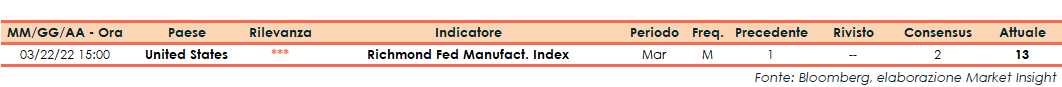 Il sondaggio, condotto dalla Fed di Richmond, traccia il sentiment dei produttori dell’omonimo distretto che comprende Virginia, Maryland, Carolina del Nord e del Sud, Distretto di Columbia e gran parte del West Virginia.