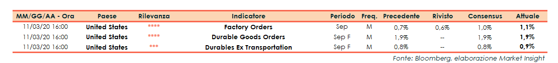 La lettura finale di settembre per gli ordini di beni durevoli ha messo in evidenza un aumento dell’1,9%, in linea con le stime e la rilevazione preliminare, entrambe pari a +1,9 per cento.
