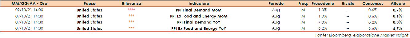 Il Dipartimento del Lavoro degli Stati Uniti ha reso noto che nel mese di agosto l’indice grezzo dei prezzi alla produzione (PPI) ha evidenziato un incremento dello 0,7% su base mensile, leggermente superiore alle attese (+0,6%) e di poco al di sotto del dato di luglio (+1%). Su base annua, i PPI sono aumentati dell’8,3%, rispetto al +7,8% del mese precedente (consensus +8,2%).