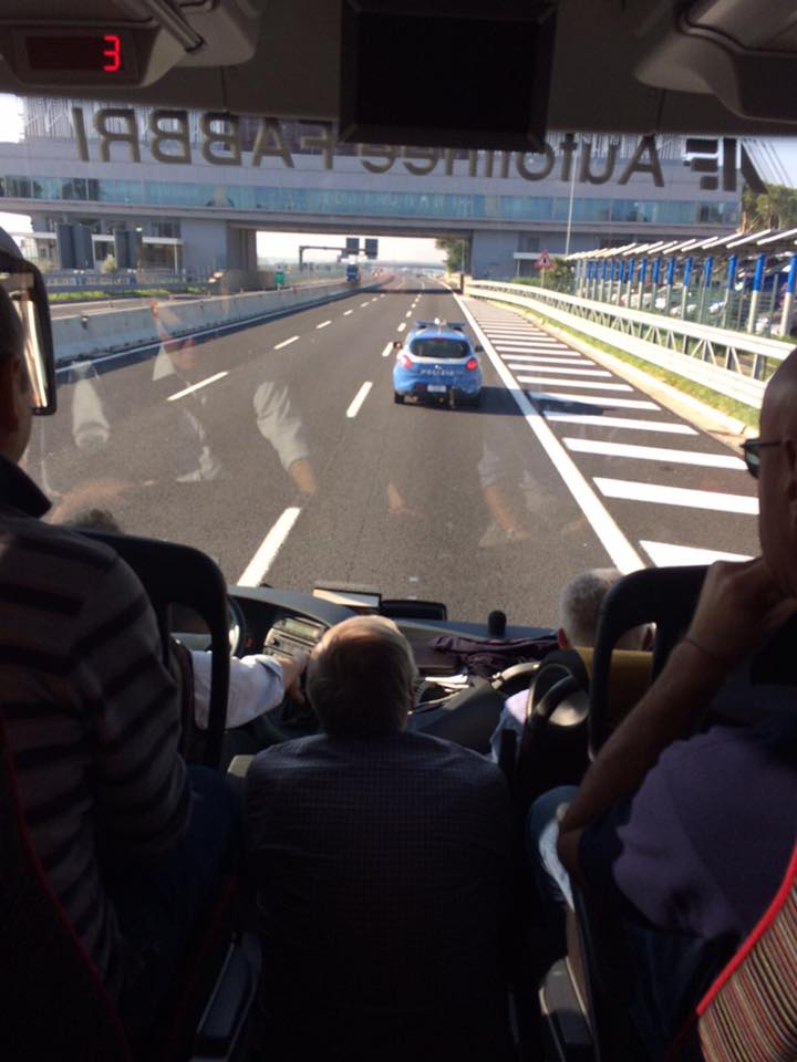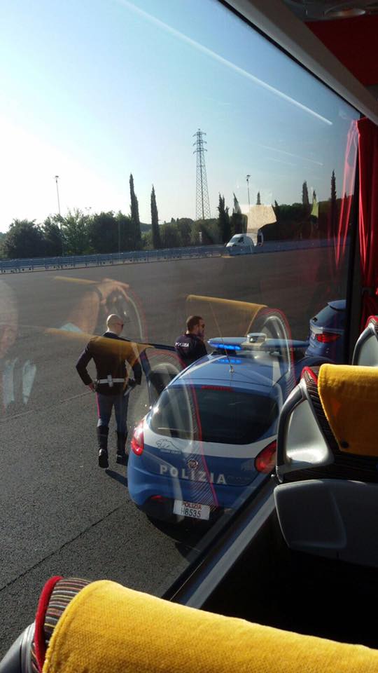 Ed è così che stamani, un pullman che proveniva da Arezzo e che doveva arrivare a Roma per una democratica manifestazione regolarmente annunciata in questura, viene fermato dalle forze dell’ordine poco prima di entrare su Roma.