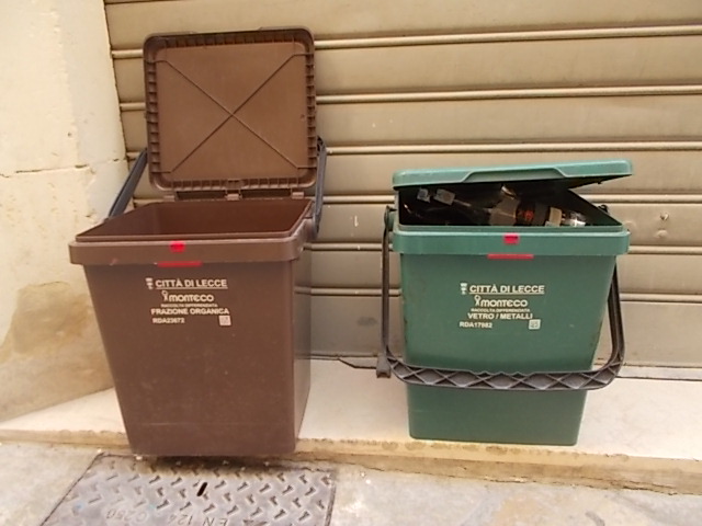 Nel Salento, a Lecce, splendida città barocca (90.000 abitanti,) finemente ristrutturata grazie al benefico ottenimento di fondi comunitari che le stanno ridonando prestigio e luce, il discorso dei rifiuti urbani non è esteticamente impattante come a Siena: infatti, si trovano per le vie piccoli contenitori di plastica con colori diversi che ogni locale, esercizio, famiglia, lascia fuori della porta o in zone definite per essere ritirato da furgoncini elettrici.