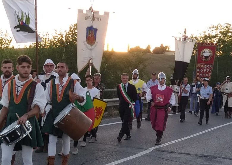 CASTELNUOVO BERARDENGA. Quest’anno per la festa “Passato e presente” di Casetta, in ricordo della Battaglia di Montaperti, c’è stato l’affidamento alla Madonna nella Cappella del Martirio delle “truppe” e del “popolo ” di Siena, che in corteo si sono poi recati all’Acqua Borra per la “cena della battaglia”.