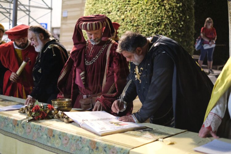 Al termine della serata uno spettacolo imperdibile: l’esibizione del Gruppo Sbandieratori e Tamburini della Giostra del Saracino.