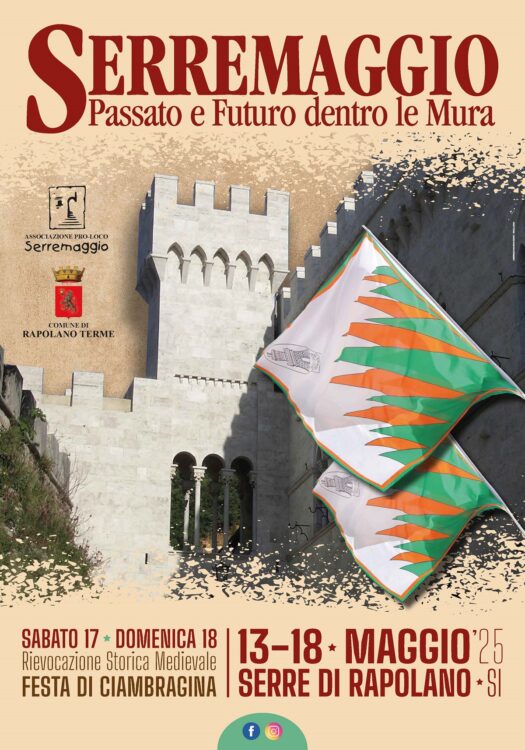 Info. Serremaggio è organizzata dall’Associazione Proloco Serremaggio con il patrocinio del Comune di Rapolano Terme. Per ulteriori informazioni, è possibile scrivere all’indirizzo mail serremaggio@gmail.com e seguire tutti gli aggiornamenti sui canali social di Serremaggio: la pagina Facebook e il profilo Instagram.