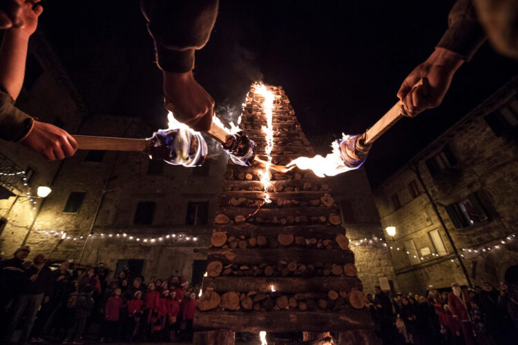 ABBADIA SAN SALVATORE. Ad Abbadia San Salvatore (Monte Amiata – Siena) il Natale profuma ancora di tradizione, di magia, di riti ancestrali grazie alle Fiaccole, una delle più antiche feste del fuoco italiane che nasce da una singolare tradizione millenaria intimamente sentita e molto partecipata che la città del Monte Amiata rinnova ogni 24 dicembre.