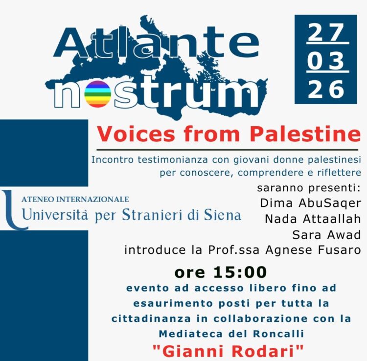 Protagoniste dell’incontro saranno le studentesse palestinesi Dima AbuSaqer, Nada Attaallah e Sara Awad, che condivideranno in prima persona esperienze di vita, percorsi di studio e riflessioni legate alla realtà sociale, culturale e quotidiana del loro Paese. Le loro voci offriranno uno sguardo autentico e non mediato, capace di arricchire la comprensione di contesti spesso raccontati solo attraverso narrazioni esterne.